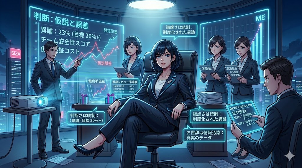 私はこれを、「成功は認知の粉飾を起こす」と考えています。まだ不正会計ではありません。数字は合っている。でも解釈が歪む。「うまくいった=自分が特別に正しい」という注記が、頭の中だけに勝手に付く。この注記が増えた人から、会議で反対意見に苛立ち始めます。なぜなら異論は情報ではなく、自分の神話を傷つけるノイズに見えるからです。ここまで来ると、ハブリスはもう気分ではなく、意思決定インフラの障害です。