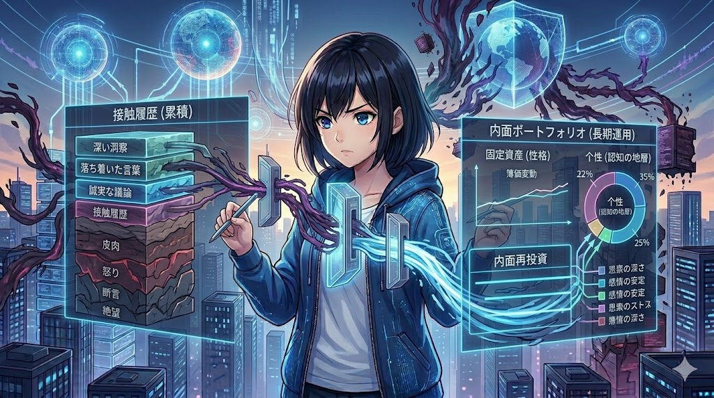 でも実際には、何に繰り返し触れてきたかのほうが、その人を作ります。皮肉、怒り、極端な断言、絶望的な未来予測。そういうものに長く浸かれば、世界の見え方はそちらに寄る。逆に、誠実な議論、少し長い視点、落ち着いた言葉に触れ続ければ、判断の型もそちらに寄る。個性は、反復接触がつくる認知の地層です。投資で言えば、一発当てた銘柄より、長期の資産配分がポートフォリオを決めるのと同じです。