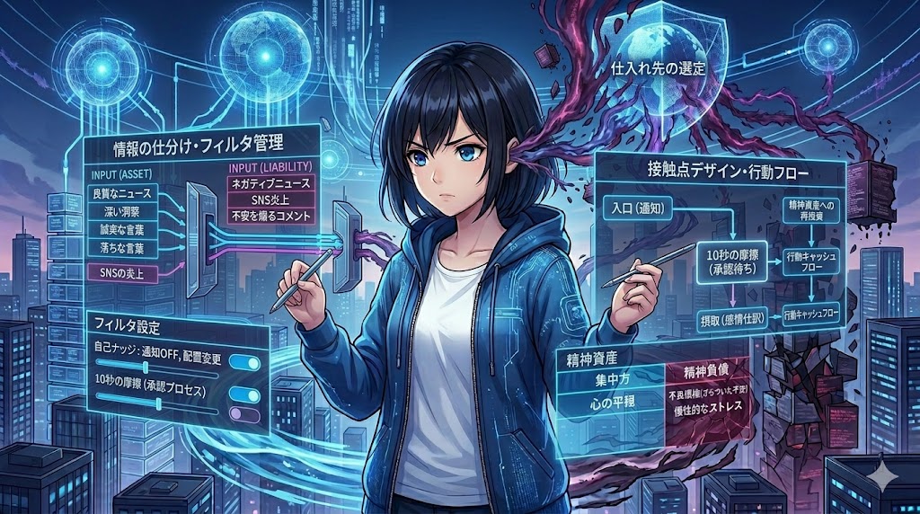 自分の気分がなぜ乱れるのか。なぜ本来やるべきことからズレるのか。なぜ仕事や人間関係の判断まで濁っていくのか。その流れを、心理学の研究を土台に、投資と会計の視点で読み解きます。情報の質は、感情の問題で終わりません。P/LにもB/Sにも効きます。焦って雑な返事をしたら関係資産が傷む。寝る前に不安を煽る情報を浴び続ければ、翌日の集中力という運転資本が削られる。情報管理は気分の話ではなく、人生経営の内部統制なんです。
