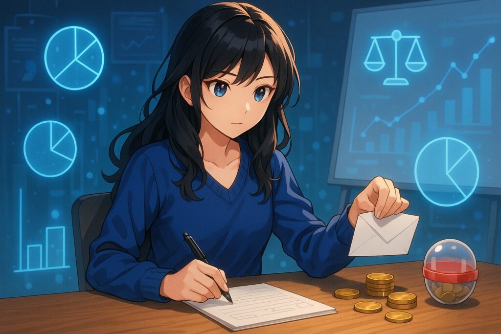 とはいえ、消費者としては「楽しいけど、無限に回すのは怖い」。そこでこの記事は、会計の考え方で“1回の価値”を見える化しつつ、心理会計(お財布の中での自分ルール)を味方にするやり方をまとめます。数式は最小限。キモはシンプルで、「1回=期待値(当たりの転売相場×確率−総額)」という考え方で冷静さを取り戻すこと。そのうえで、“3回上限の封筒ルール”を導入して、上振れ(良い当たり)だけを拾いにいく。やることは地味ですが、これが一番効きます。ガチャは“超小口のギャンブル”――だからこそ、原価の目線と心理の手綱を同時に握るのが攻略の近道。今日は「なぜ高いのか」を原価で分解し、「どう付き合うか」をお金の言葉でやさしく整理します。読んだ後、あなたの指は同じように回していても、お金の使い方はもう別のゲームになっているはずです。