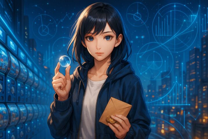 とはいえ、消費者としては「楽しいけど、無限に回すのは怖い」。そこでこの記事は、会計の考え方で“1回の価値”を見える化しつつ、心理会計(お財布の中での自分ルール)を味方にするやり方をまとめます。数式は最小限。キモはシンプルで、「1回=期待値(当たりの転売相場×確率−総額)」という考え方で冷静さを取り戻すこと。そのうえで、“3回上限の封筒ルール”を導入して、上振れ(良い当たり)だけを拾いにいく。やることは地味ですが、これが一番効きます。ガチャは“超小口のギャンブル”――だからこそ、原価の目線と心理の手綱を同時に握るのが攻略の近道。今日は「なぜ高いのか」を原価で分解し、「どう付き合うか」をお金の言葉でやさしく整理します。読んだ後、あなたの指は同じように回していても、お金の使い方はもう別のゲームになっているはずです。