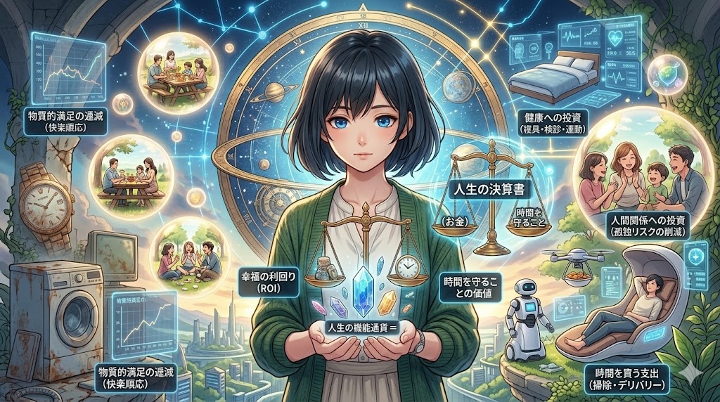 高級品よりも“時間を買う支出”のほうが満足度を押し上げやすい、という研究はかなり示唆的です。さらに長期幸福を支えるのは、健康と人間関係という無形資産でした。