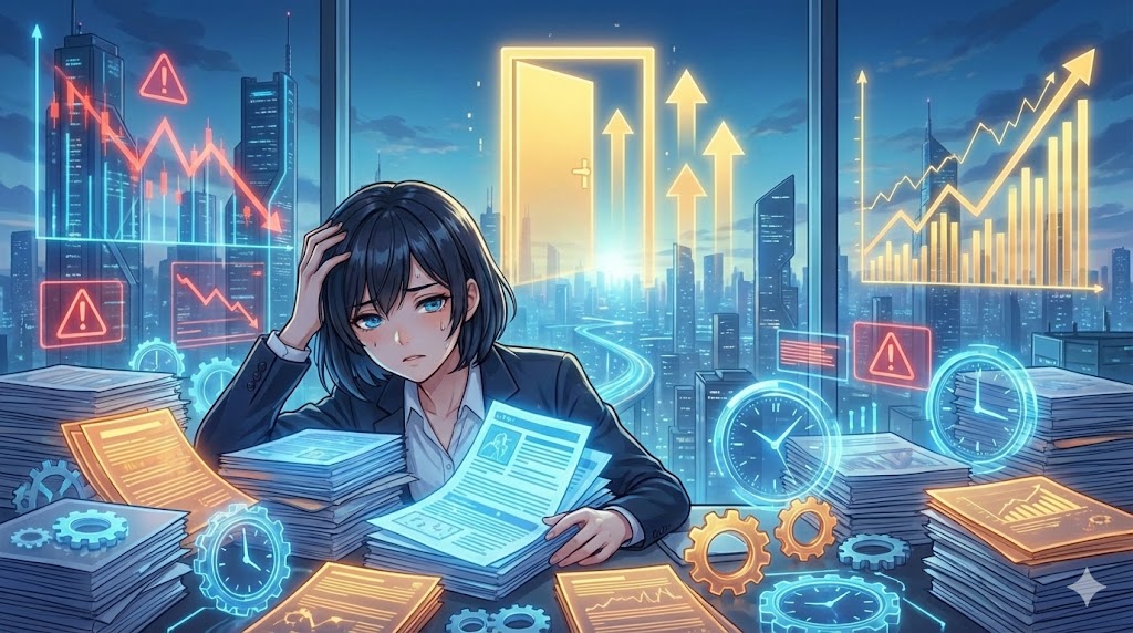タスクという名の「在庫」が常にパンパンに詰まっていて、新しい商品(チャンス)を入荷するスペースがどこにもない。しかも、その在庫の多くは、時間の経過と共に価値が下がる「陳腐化したルーティンワーク」ばかり。これでは、市場の変化に対応できるわけがありません。