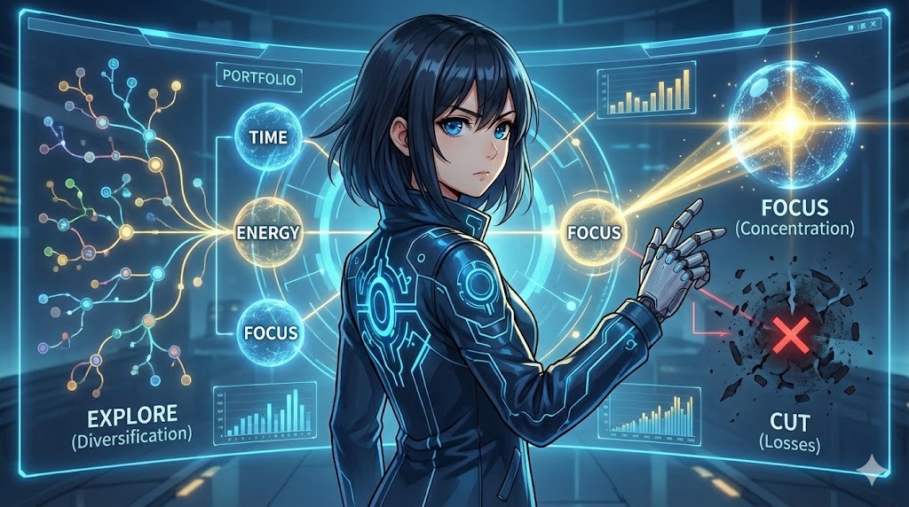 無駄な固定費(悪い習慣・効果のない努力)をバッサリ切り捨て、あなたの才能と時間が最も輝く「一点」に投資を集中させてください。