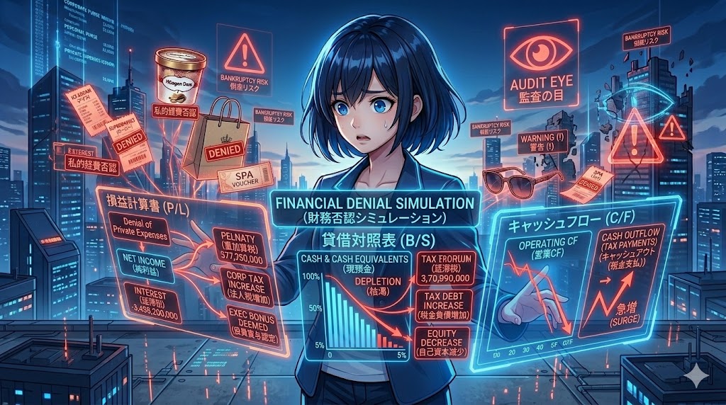 では、実際に税務調査に入られ、私的費用が「経費ではない」と否認された場合、P/LやB/Sにどのような地獄が待っているのでしょうか。具体的な「最悪のシナリオ」の計算式を見てみましょう。