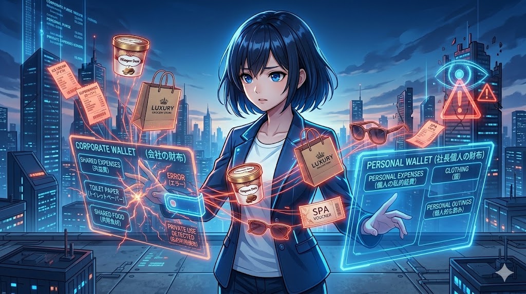 「そうだ!自分の財布からお金を出すのをやめて(=役員報酬を極限まで下げて)、個人的な買い物も全部『共益費の財布』から出せばいいんだ!」