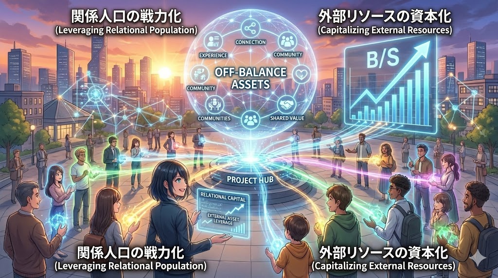 自社の社員(オンバランスのアセット)だけでなく、外部のファン、ユーザー、地域住民といった「外部リソース」を、自社の価値創造プロセスに組み込む戦略です。