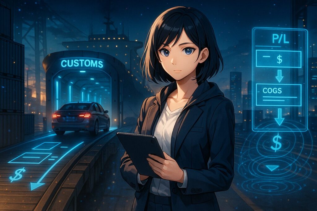 まずは会計の地図を持ちましょう。損益計算書(P/L)は、ざっくり「売上 − 売上原価 = 粗利」「粗利 − 販管費 = 営業利益」という一本道。ここで関税は売上原価に直行します。材料費や部品、物流費と同じ棚に乗るので、発生した分だけ粗利がその場で目減りし、結果として営業利益まで細ります。だからニュースで「米国の自動車関税が上がった」と聞いたら、まずは「原価が増えた=粗利が減った」と機械的に捉えるのがコツ。実際、トヨタの上期(4–9月)では純利益が前年比▲7%、米関税の影響が重いと各社が明言しています。米国の対日(完成車・部品)関税は2025年に一時27.5%まで上がり、その後も従来の2.5%より高い約15%で推移——この差分が、そのまま原価にのしかかるイメージです。