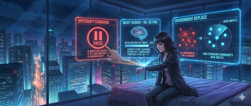 - 避けたい未来の再言語化:今日、どれくらい「なりたくない自分」に近づいてしまったかを冷徹に見つめ、その恐怖をガソリンに変える。