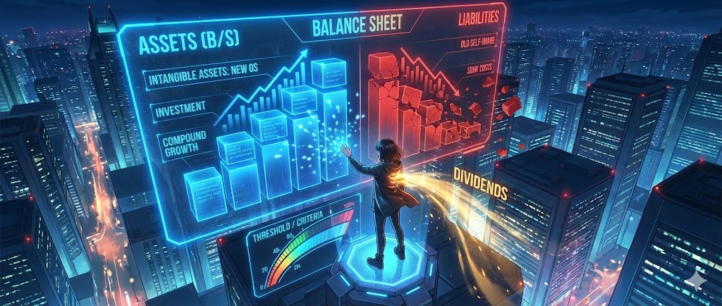 この冷徹な損切りが行われて初めて、新しいOSをインストールするためのストレージ(脳の余裕)が確保されます。人生のポートフォリオを再構築するために、まずは負債(古い自己像)を清算する覚悟を持ってください。