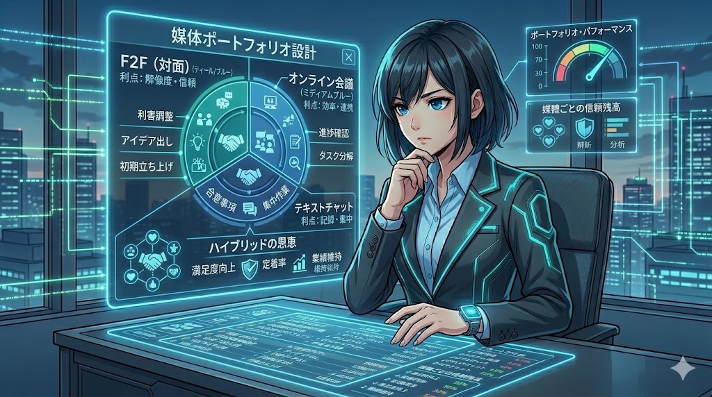この切り分けができるだけで、組織の疲労はかなり減ります。会うべき会議だけ会う。残すべきものは文字で残す。集中すべき日は守る。媒体選びをセンスの話で終わらせず、業務設計の話に落とす。それが、これからの実務家に必要な腕前だと思います。
