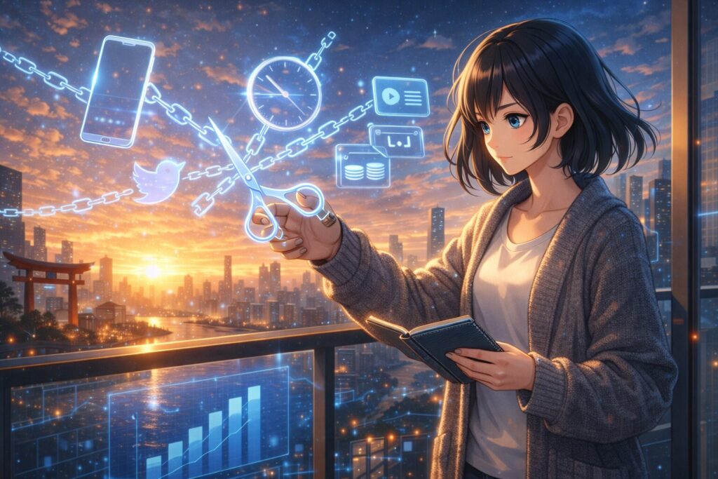 ポイントはシンプル。「やること」を増やす前に、「やめること」を決める。SNS、惰性のサブスク、付き合い残業、会わない人間関係——固定費を切る決断は、元旦にしかできません。