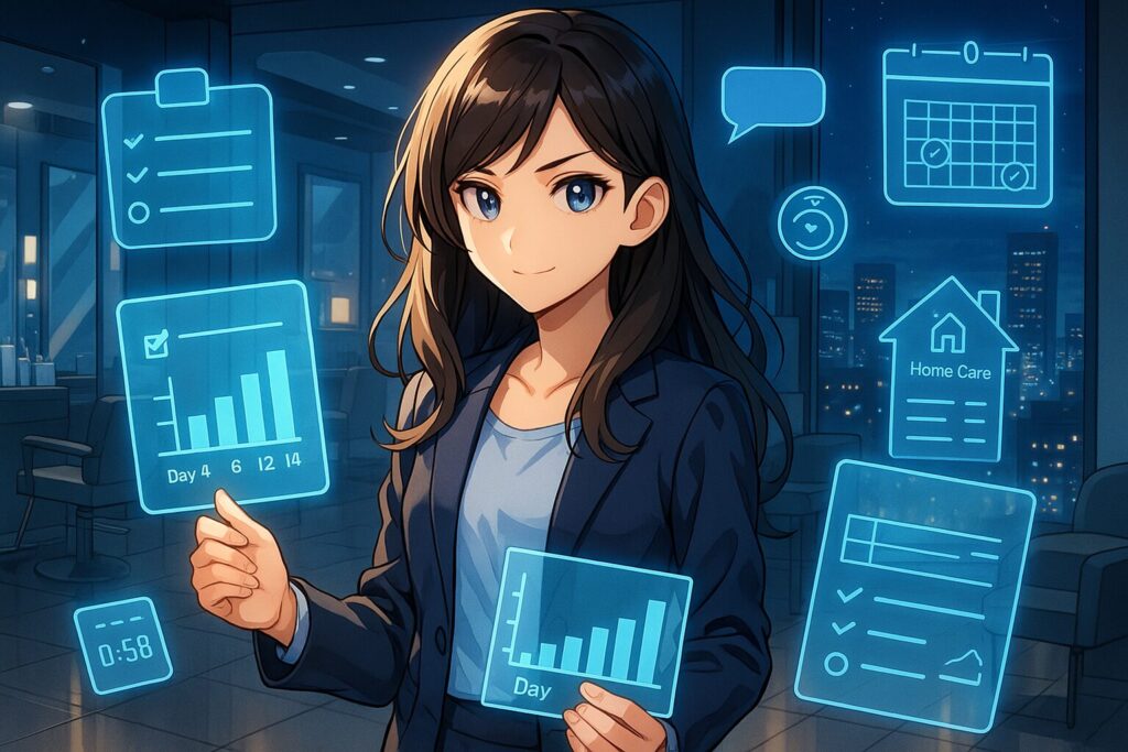 美容院のメニューは増え続けます。名前は派手でも、本質はシンプルでした——あなたはお店の時間を買い足している。だからこそ、分単価で比べるとノイズが落ち、KPI(ツヤ/持ち日数/ダメージ抑制)に沿って要・不要を仕分けられる。今日あなたがやったのは、難しい専門知識ではなく、目的→数字→行動の順に並べ直すこと。たったこれだけで、提案は“受けるもの”から“選ぶもの”に変わります。
