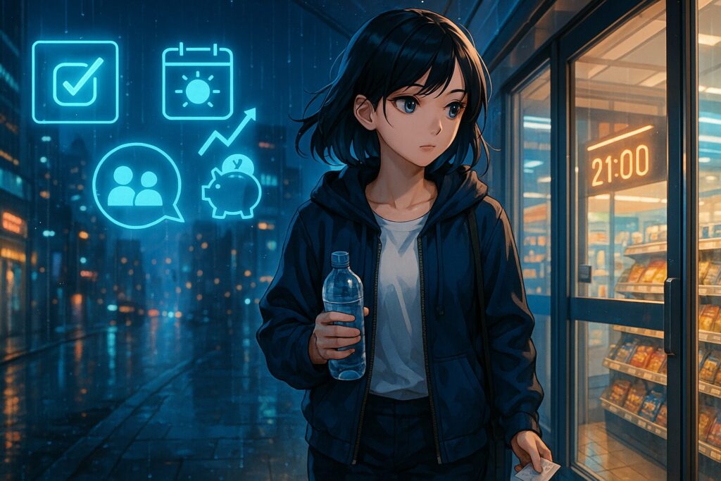 夜のコンビニは、確かに魅惑のワンダーランドです。でも、真夜中に財布の紐を緩めることを「負け」と捉える必要はありません。人間の脳には元々、疲れが溜まると甘いものに手が伸びてしまう性質があります。重要なのは、その結果に振り回されず、“戦略的に負ける”か“ルールで勝つ”かを自分で選べることです。今夜、21時になったらコンビニに立ち寄らず、水だけを買う――そう宣言して一歩を踏み出せば、明日の朝には少し誇らしい気持ちで目覚めることでしょう。お金だけでなく、意思決定のエネルギーや自尊心も「貯金」できた感覚になるはずです。