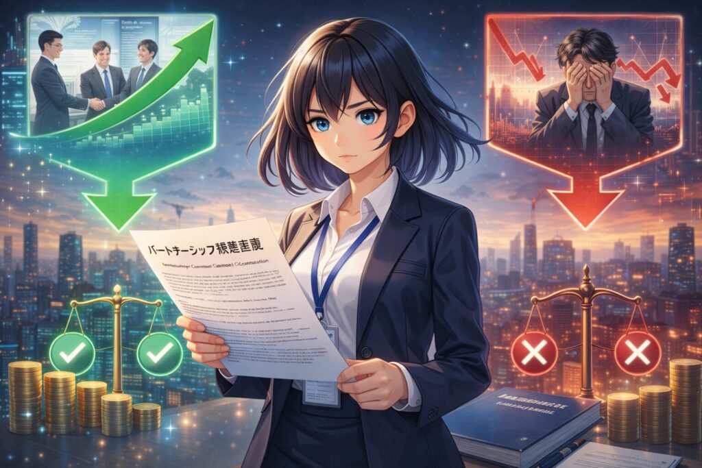 近年、「パートナーシップ構築宣言」という言葉を耳にする機会が増えていませんか?これは大企業と中小企業の共存共栄を目指した取り組みですが、昔は「どうせお題目でしょ」「社長のポエムみたいなもの」と軽く見られがちでした。しかし2026年の法改正を機に状況は一変しています。実はこの宣言、企業にとっては投資家へのアピール材料(IR)になる一方、約束を守れなければ負債にもなり得る重大な要素なのです。この記事では、形式的な「お作法」と思われていたパートナーシップ構築宣言が、どうして今や企業価値に直結する存在へと進化しているのかを紐解きます。読み終えれば、「言ったこと」がビジネスの世界で本当に資産にも負債にもなるんだ、と実感してもらえるはずです。