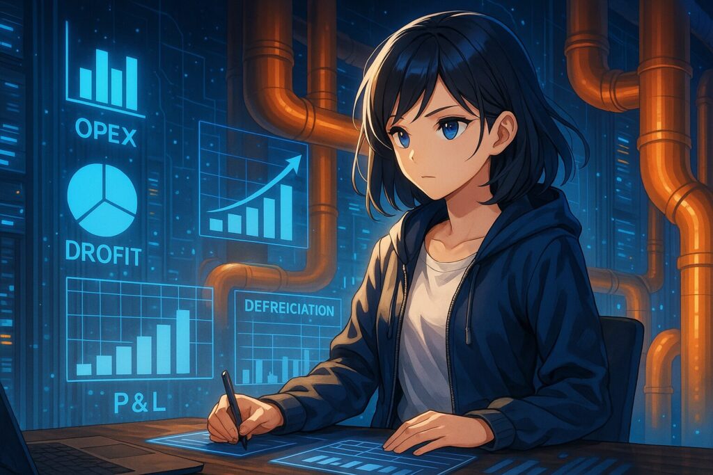 前節で見てきたように、グーグルは大胆な設備投資で廃熱活用に乗り出しました。この裏にはもちろん環境への配慮がありますが、ビジネスとしての合理性もあります。ここからは一転してファイナンスや会計の視点を持ち込み、「なぜ大きなお金を今使うことが、後々の利益を厚くすることにつながるのか」を考えてみます。「投資」と聞くと難しく感じるかもしれませんが、ポイントはシンプルです。初期費用(CAPEX)をかけてでも将来の固定費(OPEX)を削減すれば、その分だけ利益が増えるということ。グーグルのデータセンター戦略も、まさにこの考え方に合致します。会計初心者の方にも分かりやすいよう、順を追って説明しましょう。
