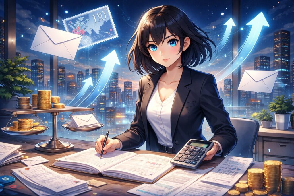 読み終わるころには、「郵便の値上げ=不便」ではなく、「事務コストの上昇=ビジネスモデルの選別」だと見えるはず。自社の“紙仕事”の棚卸しや、DX投資の優先順位づけにも使えるように、ざっくり試算の考え方(1通あたりの総コスト=郵便+封筒+印刷+人件費)まで落とし込みます。肩の力を抜いて、一緒に整理していきましょう。