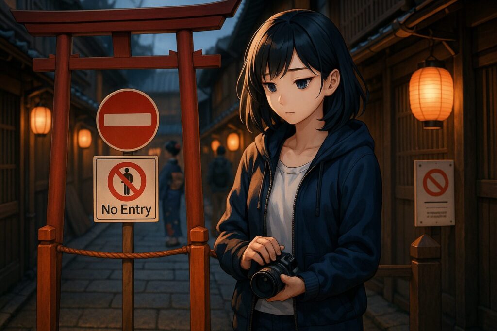 観光マナーを巡る問題は、単なるエチケット論争にとどまらず、現実のトラブルやルール整備に発展するケースもあります。その代表的な例が京都・祇園です。風情ある花街として世界的にも有名な祇園は、コロナ後の観光客急増に伴って「観光公害」とも言われる深刻なマナー問題に直面しました。ついには地元住民が私有地への立ち入りを制限し、罰金を科すという異例の措置まで講じられ、大きな話題となりました。このセクションでは、祇園のケースを中心に、観光地で実際に起きているマナー違反の現状と、現場で下された決断について詳しく掘り下げます。他の地域の動きも交えながら、「マナー違反は現実に何を引き起こすのか?」を見ていきましょう。