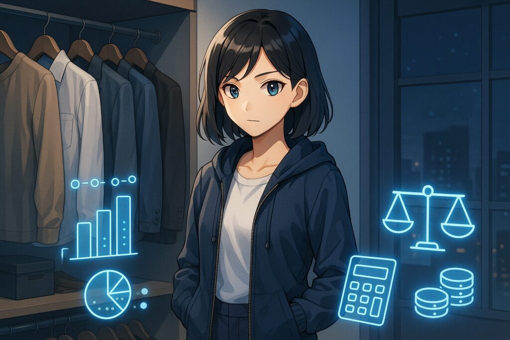 ここから更に踏み込んで、自分のクローゼットを財務諸表に見立ててみます。貸借対照表(BS)で考えれば「服の在庫=資産」、買った時点で固定資産計上し、使う(着る・洗う)たびに減価償却。損益計算書(PL)に置き換えれば、服の満足度を“収益”、購入費・クリーニング代・廃棄コストを“費用”とするイメージです。実際、クローゼット管理アプリでは着用回数を記録し、出番の少ない服を“無駄費用”として削除提案する機能があります。また若い層にはコスパ意識が強く、不必要な服は買わず、古着・レンタルを利用する節約志向が高まっています。こうした「クローゼット会計」の発想では、投資効率の悪い服(低着用回数・高維持費)はすぐ見抜けます。例えば、同じ外出着でもシワになりにくく自宅洗濯できるものはコスト低減に直結します。著名ブログでも「ワードローブを更新する人は、他者の視線でなく自分の楽しみに投資している」と分析しています。つまり、自分の服にも数字を当てはめれば、無駄な出費にサヨナラできるのです。