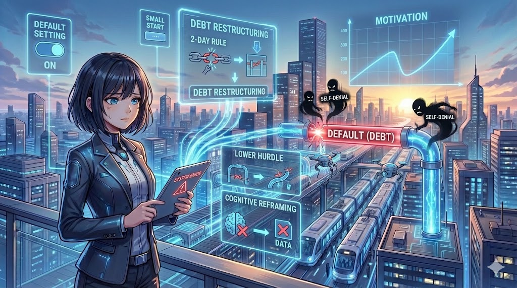 ここで多くの人が「今日から毎日、死ぬ気で頑張る!」という精神論(追加の意思力投入)に走ります。