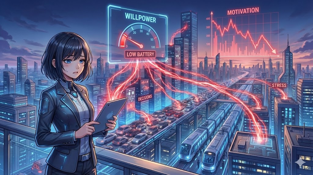 朝、満員電車に揺られ、上司からの無理難題に応え、ランチのメニューを悩み、夕方の会議で神経をすり減らす……。これら一つひとつの行動が、あなたの「意思力」というキャッシュを容赦なく削っていきます。