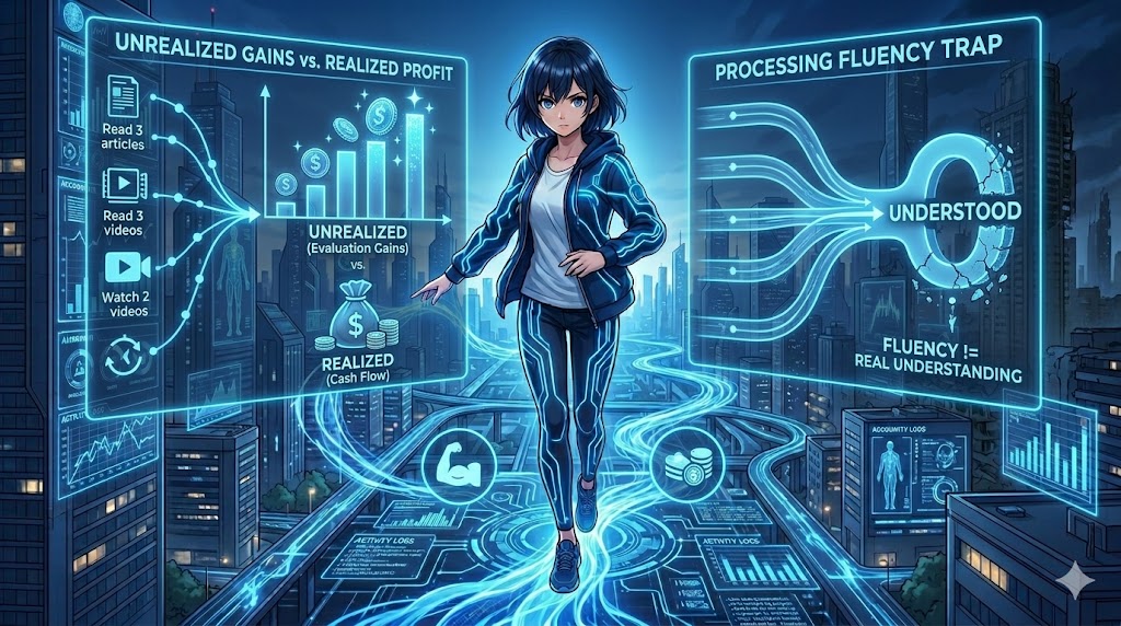 認知心理学では、情報がスムーズに入ってくると、人は実力以上に「分かった」と感じやすいことが知られています。これが、いわゆる処理流暢性の罠です。読みやすい、見慣れている、整理されている。すると脳は、それを「理解できた」と誤認しやすい。