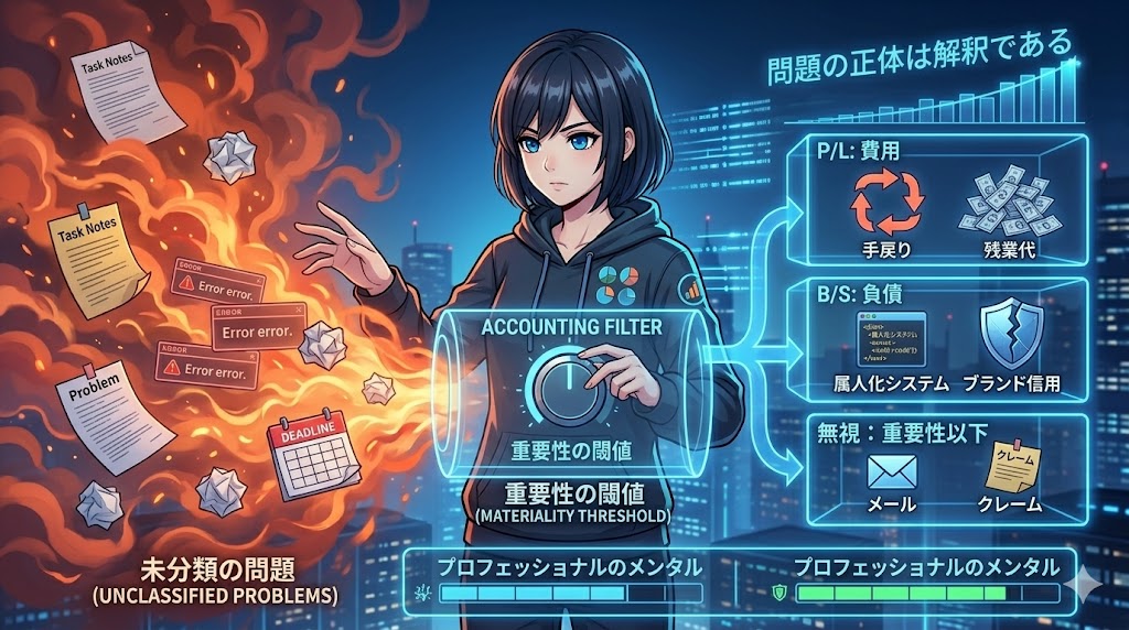 重要性の閾値(マテリアリティ)を引き上げ、感情ではなくP/LやB/Sのダメージだけでファクトを切り分ける。この会計的思考の刃を手に入れれば、これまで致命的に見えていた大問題の半分は「単なるノイズ」として消え去り、もう半分も「スケジュールと予算を当てて処理すべき、ただの投資対象(プロジェクト)」へと変わるはずです。