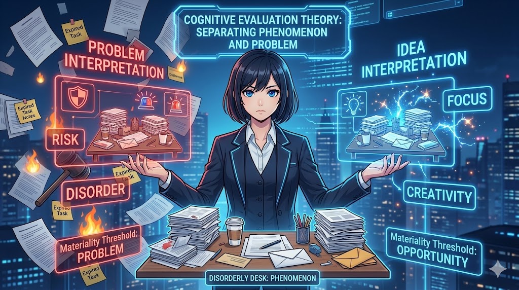 これと全く同じ構造が、私たちの心理やオフィスの日常にも当てはまります。心理学における「認知的評価理論」では、人間は出来事(刺激)そのものに対してダイレクトに感情的な反応を示すのではなく、「その出来事が自分にとってどういう意味を持つのか(有益か、有害か、脅威か)」という自分の内なる評価・解釈のフィルターを通した結果として、怒りや不安といった感情を抱くとされています。つまり、同じ一つの出来事であっても、それを受け取る人の価値観や立場、知識によって「致命的な大問題」にもなれば、「全く気にならない日常のノイズ」にもなるのです。