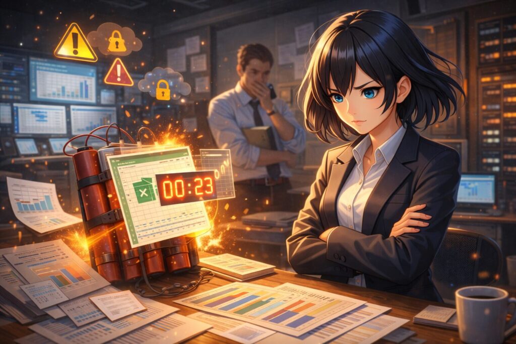 • 不正リスク: 誰でもExcelファイルを持ち出せるため、不正操作の痕跡が消えやすい。経営陣が投資家に「統制は万全」と説明しようにも、Excelでは心もとないのが実情です。