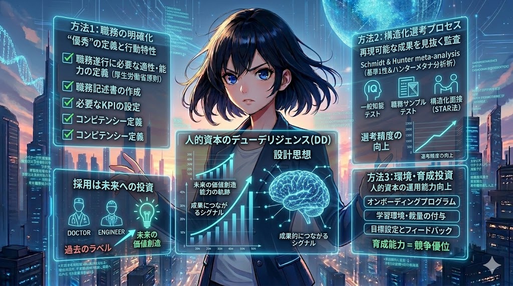 だから、人的資本の高精度DDとは、次の3点に要約できます。