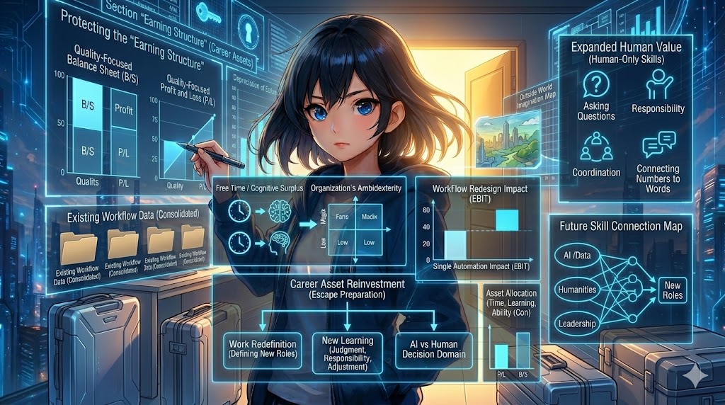 ひとつは、AI時代の「仕事の不安」を、ふわっとした精神論ではなく構造で見られるようになること。