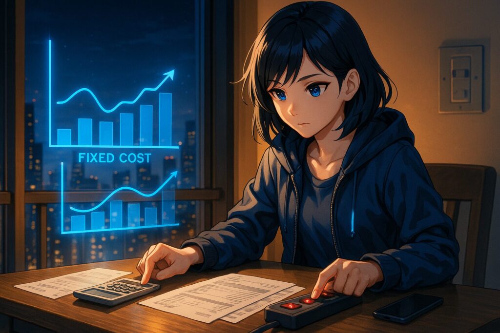 この記事で伝えたい主張はシンプル。①“変動(アップダウン)”は読めないから追いかけすぎない、②その代わり“固定費”を先に小さくして家計の土台を固める、③毎日できるミニ習慣で“見えない漏れ(待機電力)”を止める——この3点です。会計でいうと、基本料金は「固定費」、燃料費調整や使用量部分は「変動費」。固定費が小さいほど、変動に振られても赤字化しにくい。だから、契約アンペアを見直して下げる、今の生活に合う料金プランへ切り替える——ここが“ほぼ無意識で効く”黒字化の近道です(アンペアダウンやプラン変更の可否・影響は各社の約款と料金表で必ず確認を)。東京電力の公表資料でも、10月分の燃料費調整は国の支援反映後の単価で確定しており、9月分・10月分で値引きが異なるため請求のブレが生じる前提になっています。