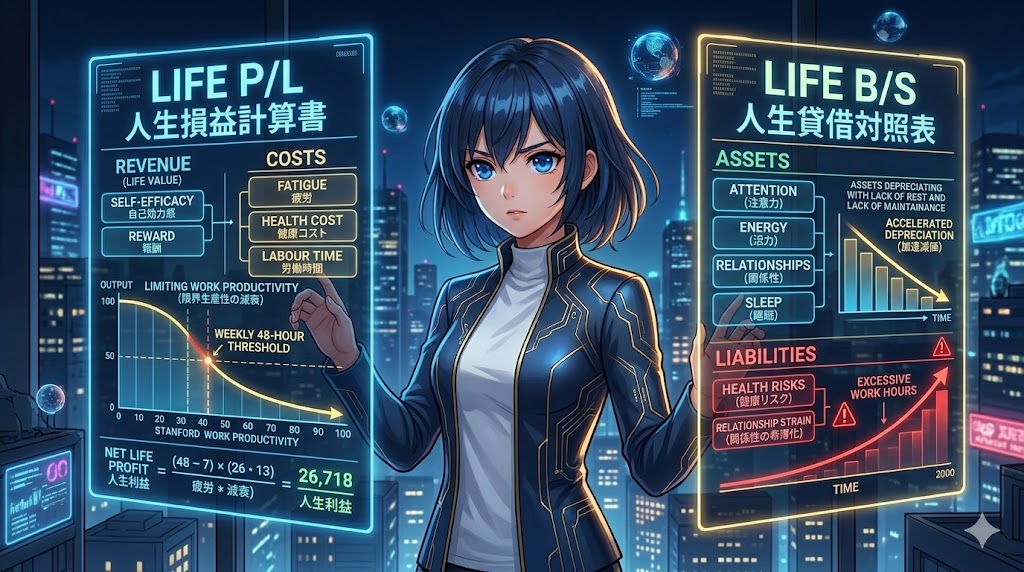 これを会計的に表現するなら、長時間労働は「短期的な売上(成果)」のために、「コア資産である人間(従業員/自分自身)」を激しく消耗させ、「簿外負債(将来の健康リスク)」を積み上げている状態です。