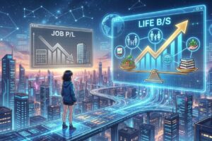多くのビジネスパーソンは、自分の価値を「年収(売上)」や「役職(利益率)」といったP/L上の指標で測っています。「今月はこんだけ稼いだ」「同期より出世して役職手当がついた」。これは分かりやすい反面、非常に危険な指標です。